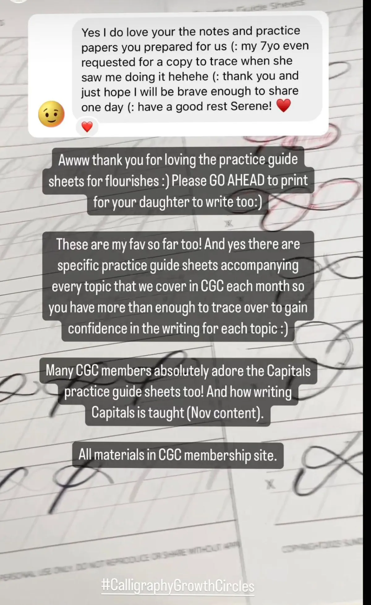 I (Serene) am confident that you will be able to take away so much from this digital video course that I offer no-questions-asked refunds. If you have showed up and stayed throughout the zoom live session and used the practice guide sheets and think you did not gain much from it, simply just email me your COMPLETED written practice guide sheets within 30 days from the masterclass (to [email protected]) and I will provide you a refund :) Having said that, I encourage you to come experience me and give yourself the permission to learn this beautiful calligraphy artform! You will love it :):):):):) I promise!