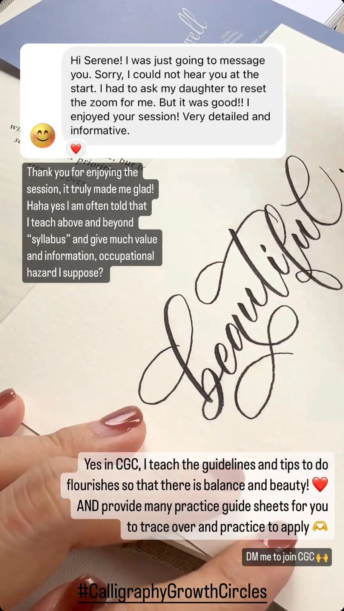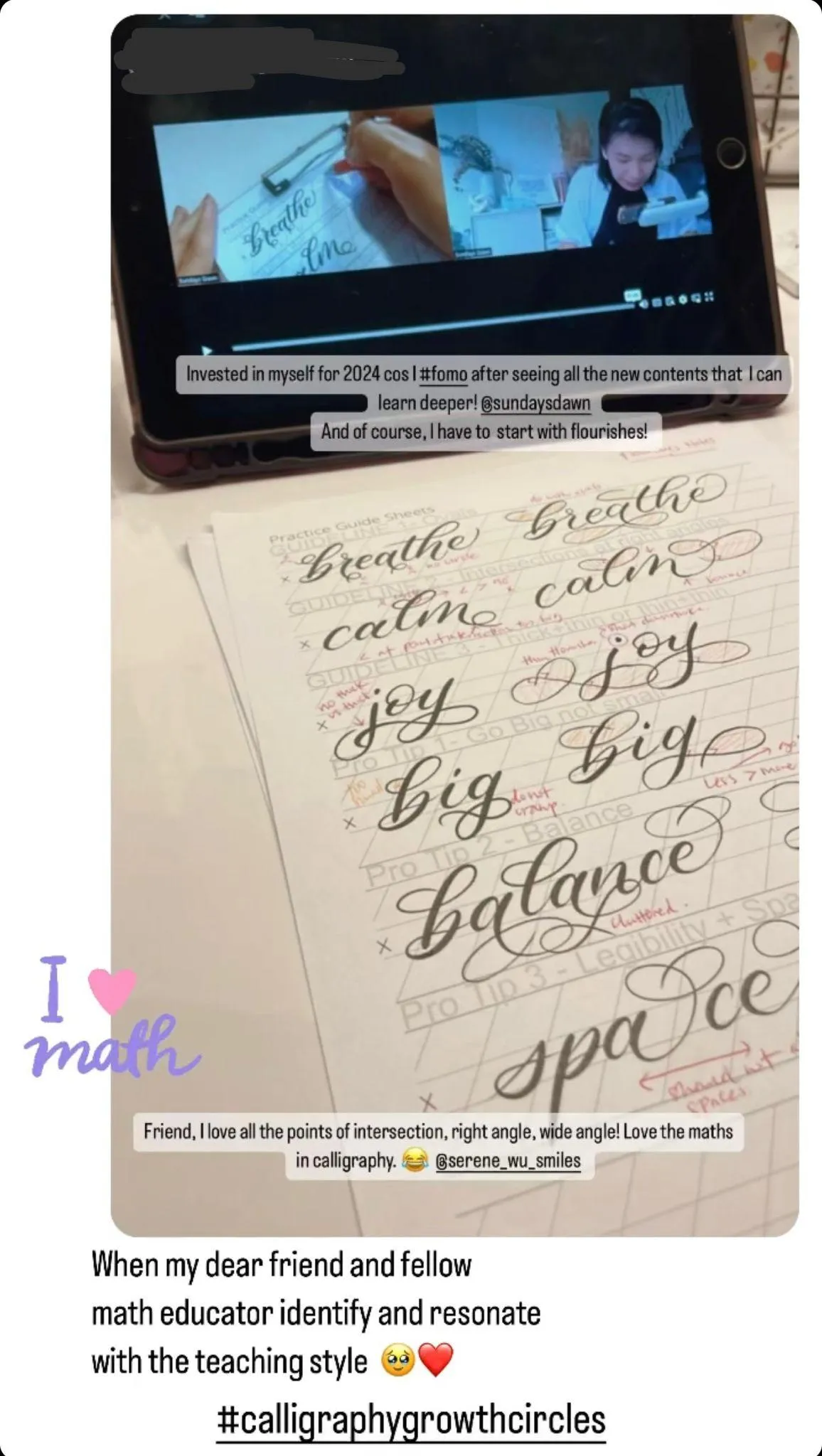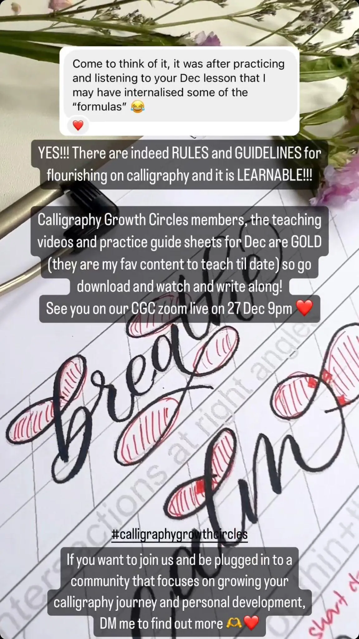 Oh, frustration is a familiar feeling for anyone learning calligraphy. The most important thing is not to give up. Be kind to yourself and remember that every stroke and every practice session brings improvement. It's about the process, not perfection. Embrace the imperfections as part of your unique journey in calligraphy. You'll look back and be amazed at your progress. Allow me to journey with you in this artform and let's be plugged into a community - Calligraphy Growth Circles that will help you GROW and be your cheerleaders in the whole learning process!